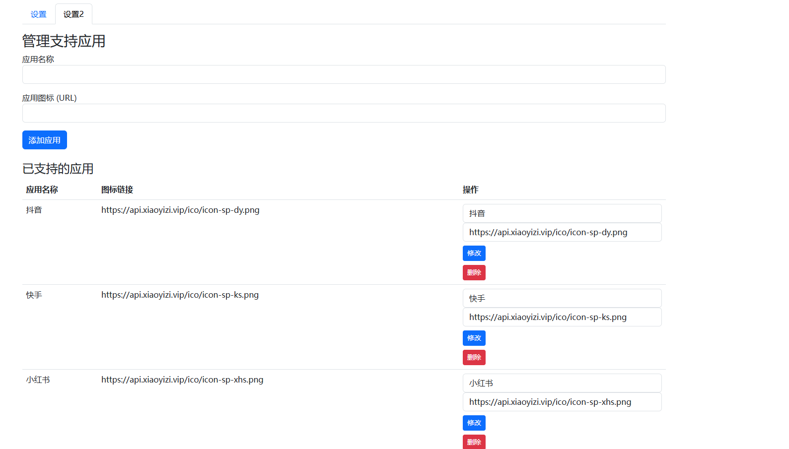 后台支持修改公告使用方式,网站支持的应用图标等,应用图标支持添加修改和一键删除